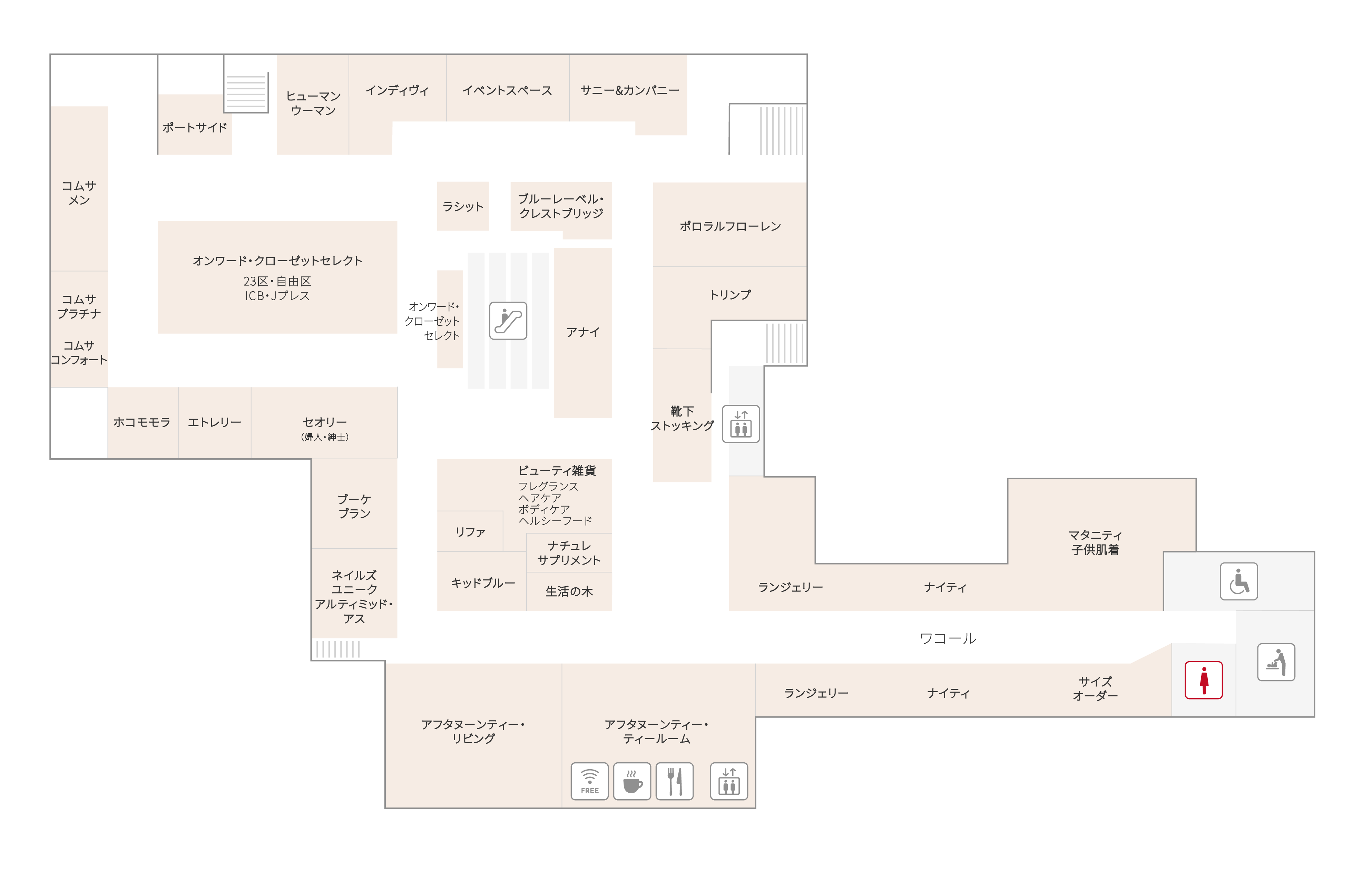 此樓層提供免費Wi-Fi連結服務。請輸入密碼“fujisaki”並使用。