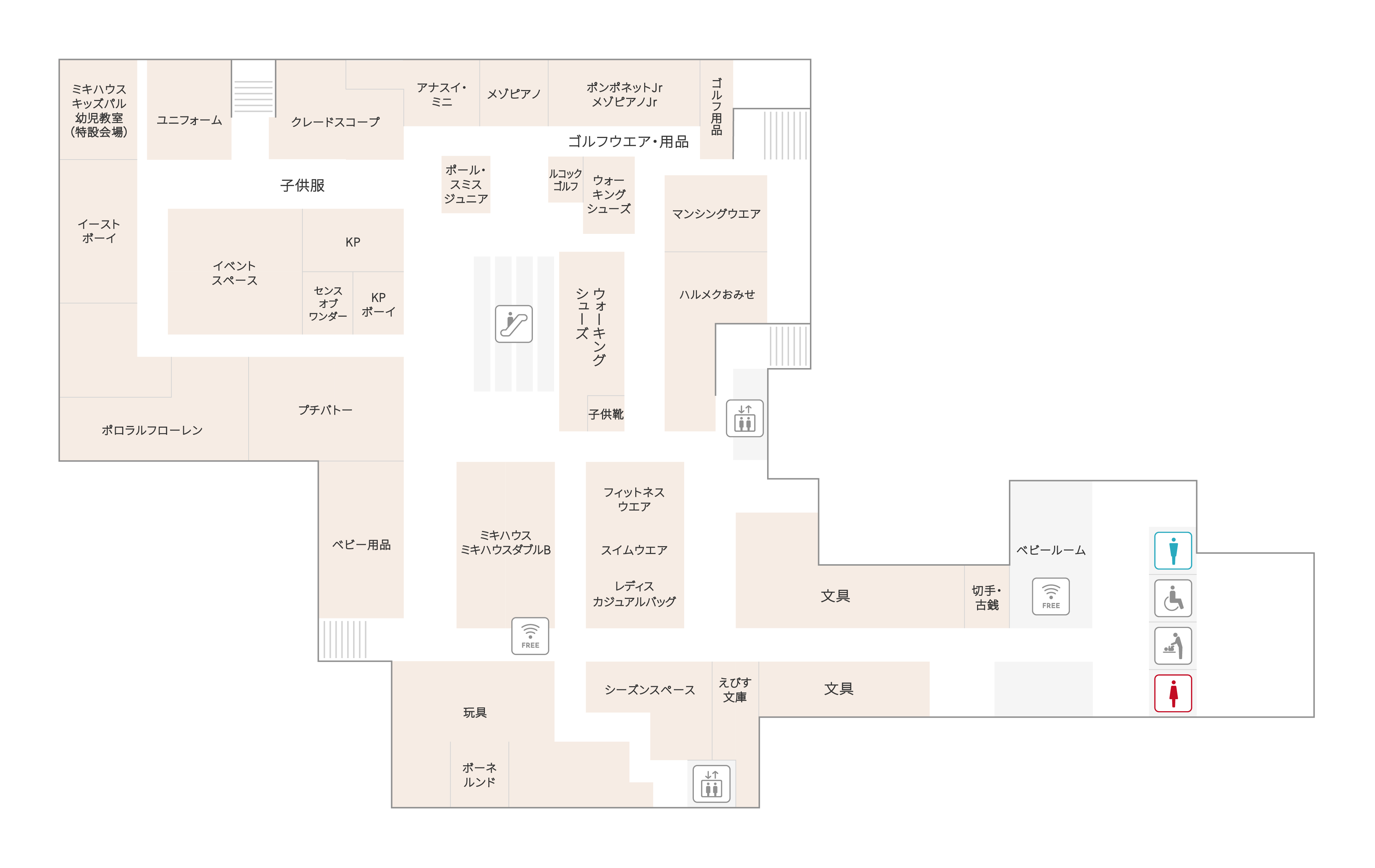 此樓層提供免費Wi-Fi連結服務。請輸入密碼“fujisaki”並使用。